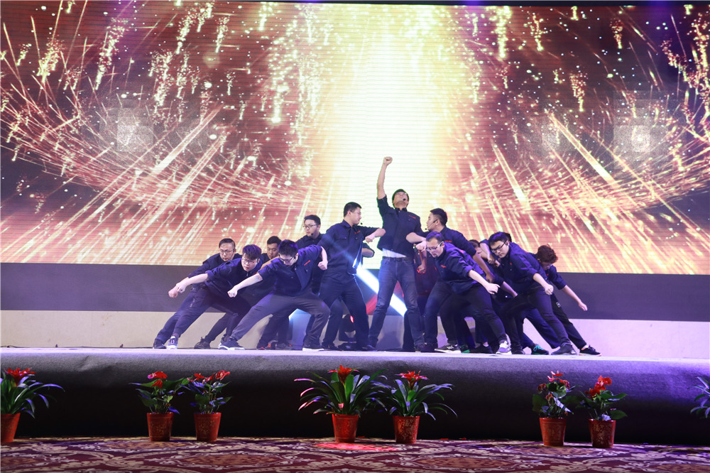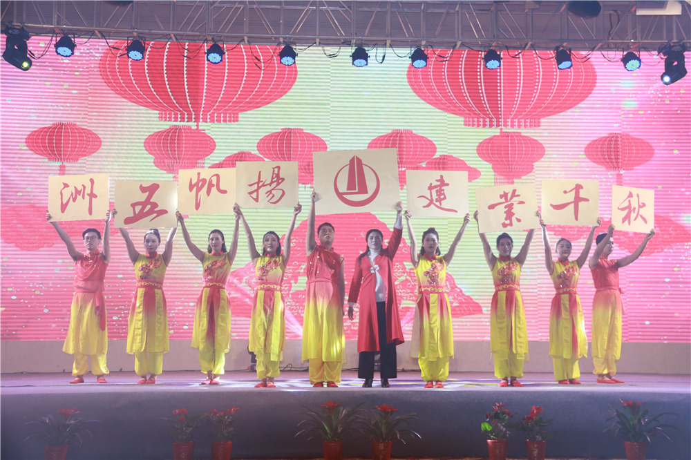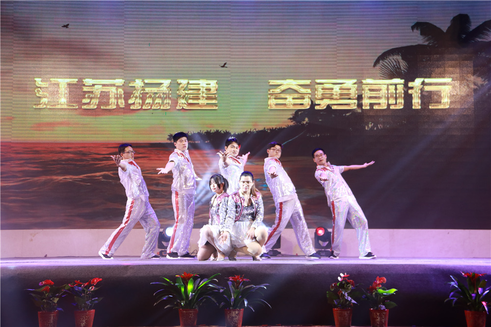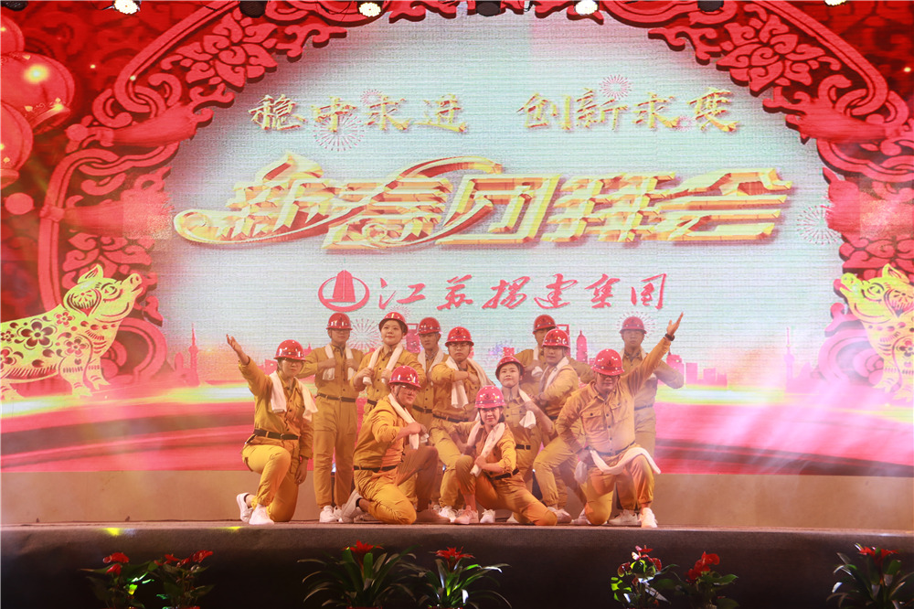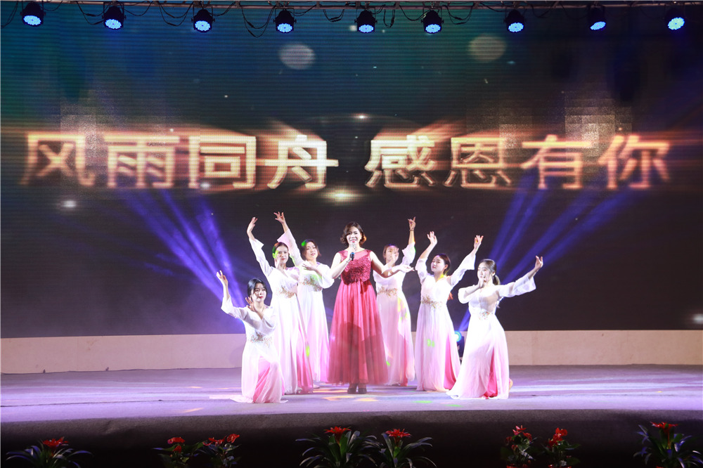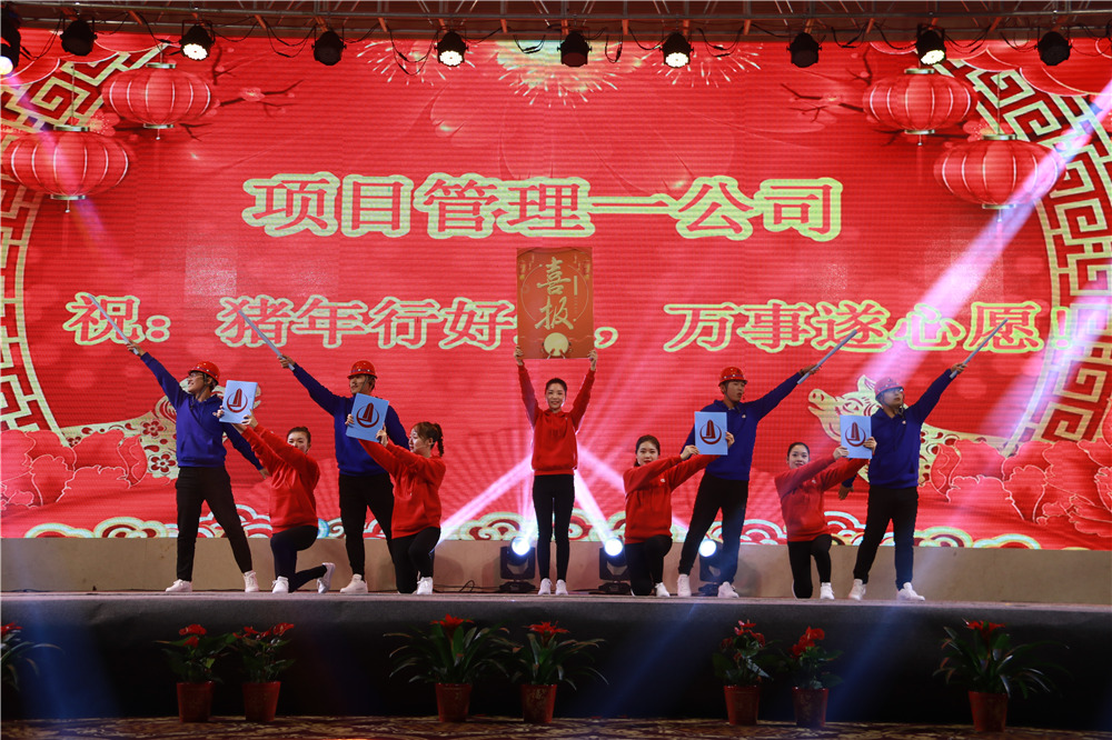 隨后,華中華鼎公司聯(lián)袂表演歌伴舞《我愛你中國&相親相愛一家人》,四公司員工表演的音樂快板《揚(yáng)建花開大上海》,講述了四公司2108年發(fā)展喜事多,業(yè)績(jī)上臺(tái)階,全速開發(fā)江浙滬的發(fā)展業(yè)績(jī);樁基公司以評(píng)話+講述+歌舞的形式表演了《我們是快樂的一家人》;一公司的搖滾說唱《一公司,爭(zhēng)第一》節(jié)目,表達(dá)了舍我其誰、永爭(zhēng)第一的豪情;三公司年輕員工表演了音詩畫劇《建筑“舞”者》;二公司的90后員工表演了,配樂朗誦《厲害了,揚(yáng)建90后》,表達(dá)了立志與前輩們一起譜寫揚(yáng)建發(fā)展新篇章的雄心;海南島的阿哥阿妹表演了舞蹈《筑夢(mèng)城市》;機(jī)電公司的說唱歌舞《追夢(mèng)揚(yáng)建》,描繪了2019將是承載新夢(mèng)想、發(fā)力新業(yè)態(tài)的嶄新一年;華發(fā)公司的音樂短劇《新時(shí)代的弄潮者》,展示了揚(yáng)建人揚(yáng)建人薪火相傳66載,緊跟時(shí)代,勇立潮頭的精神面貌;華盛周材公司最后表演了寓意深刻的歌舞+武術(shù)《風(fēng)雨同舟,感恩有你》。