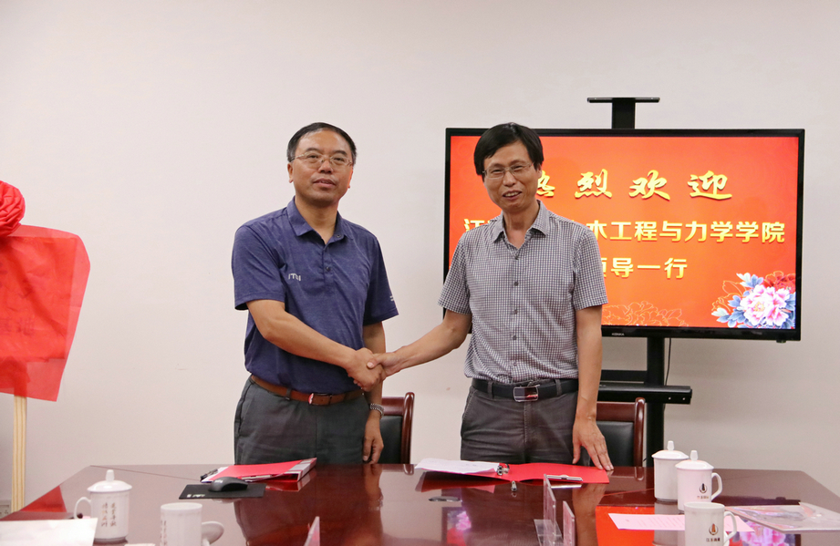 揚建網訊 6月6日下午,江蘇大學土木工程與力學學院實踐教學基地簽約掛牌儀式在我集團鹽阜西路辦公區二樓會議室舉行。江蘇大學土力學院書記張虹、院長畢勤勝等領導,以及我集團總經理鄒厚存、黨委副書記張振新及人力資源部相關負責同志出席此次儀式。