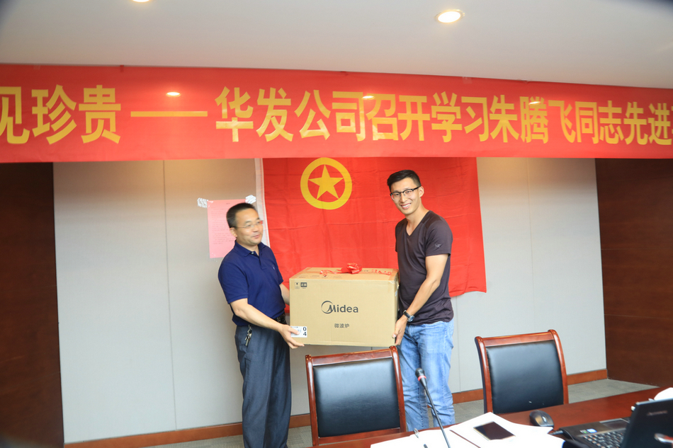 李浩煒副書記代表華發(fā)公司對朱騰飛進(jìn)行了表彰獎勵,并號召所有青年員工:學(xué)習(xí)朱騰飛身上的擔(dān)當(dāng)和奉獻(xiàn)精神,將飽滿高昂的激情投身于工作,為華發(fā)的事業(yè)盡責(zé)、盡心、盡力。
