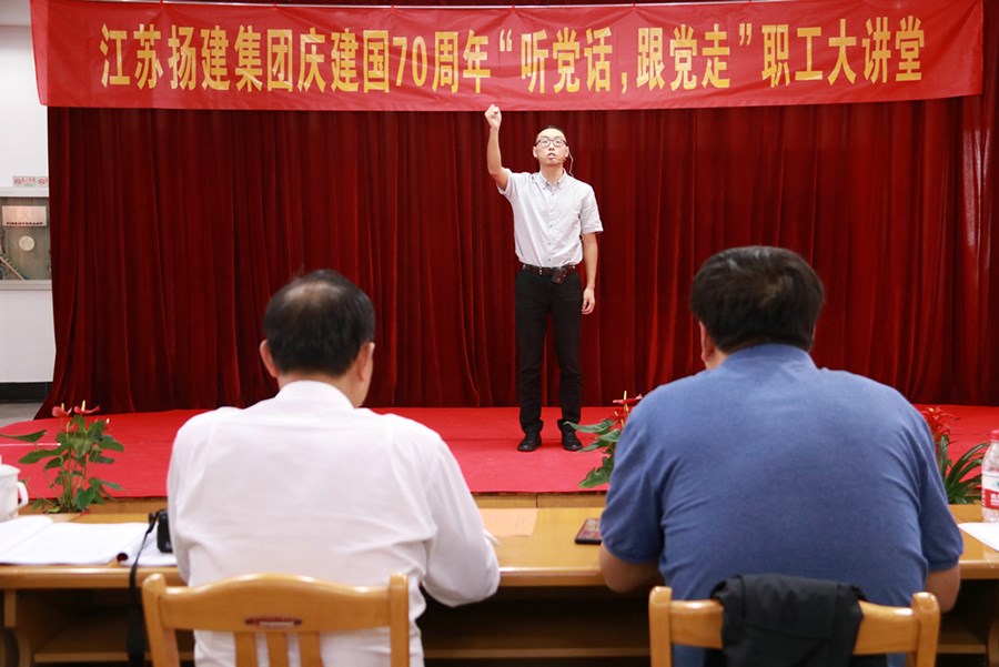 揚(yáng)建網(wǎng)訊 9月29日下午,集團(tuán)黨委、工會等部門在鹽阜辦公區(qū)七樓會議室舉辦了“聽黨話,跟黨走”慶國慶演講比賽。集團(tuán)領(lǐng)導(dǎo)鄒厚存、呂國兵、張振新、陳滸、丁傳武、周軍等蒞臨指導(dǎo),并特邀了市建設(shè)產(chǎn)業(yè)工會主任范華、市建工控股黨委副書記錢啟明共同擔(dān)任評委。集團(tuán)總部及基層單位共選派了22名選手參加了比賽。