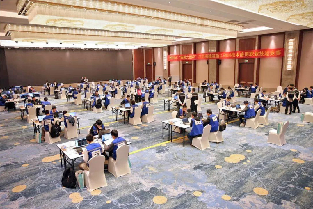 揚建網訊 10月17日至18日,“南通六建杯”全省建筑施工BIM技術應用職業技能競賽在南通如皋開元名都大酒店舉行,全省各個區市共計30個參賽組、90名選手集聚一堂,同臺競技。在集團領導的大力支持下,集團BIM技術中心挑選三位精兵強將組成代表隊,同揚州市設計院、邗建集團代表隊作為揚州市選派的三家單位,參加了本次競賽。