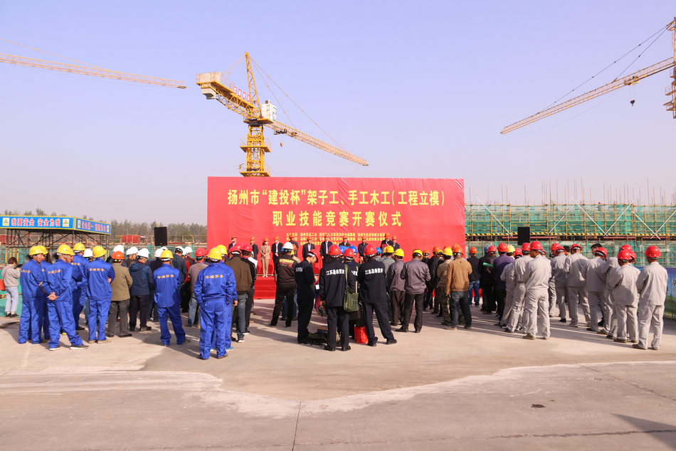 揚建網訊 10月31日,由揚州市總工會、人社局、住建局聯合主辦,高郵市總工會、人社局、住建局承辦,高郵市建設投資發展集團有限公司協辦的揚州市“建投杯”架子工、手工木工(工程立模)職業技能競賽在高郵市潤豐苑項目部工地隆重舉辦。