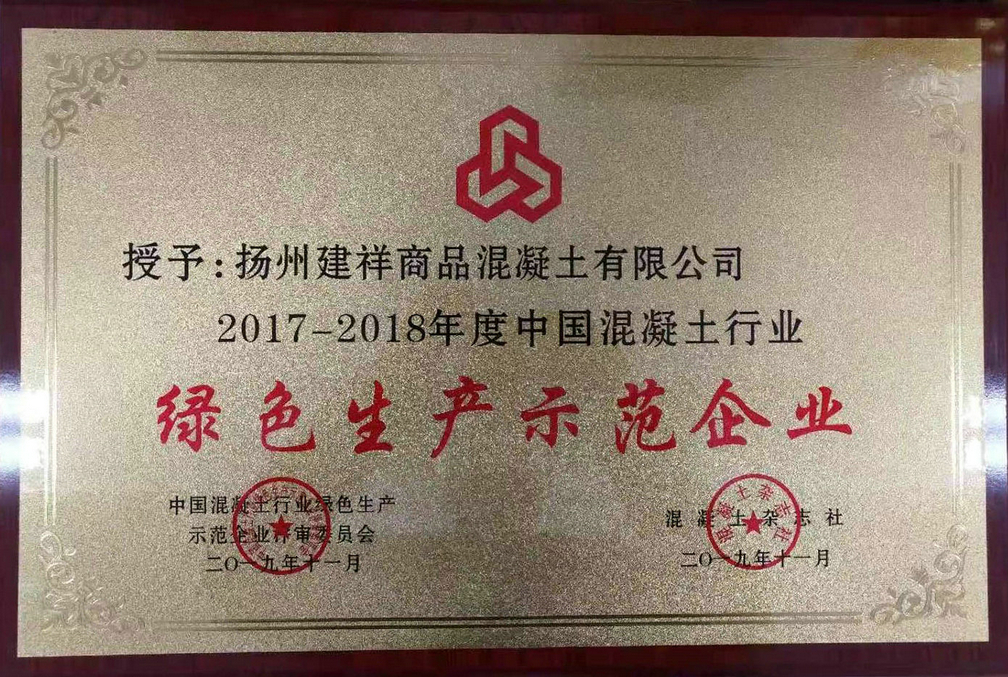 會上,對近兩年來綠色環(huán)保生產(chǎn)管理先進的企業(yè)進行了推介、表彰。我集團建祥公司被推介、表彰,榮獲“2017-2018年度中國混凝土行業(yè)綠色生產(chǎn)示范企業(yè)”稱號,連續(xù)第二次獲得該獎項,同時也是揚州地區(qū)唯一獲獎單位。