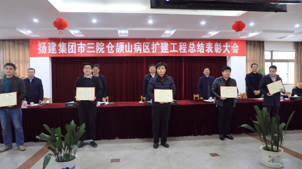 揚建網訊 3月29日下午,市三院倉頡山病區擴建項目表彰大會在集團鹽阜路辦公區七樓會議室召開。會議由集團董事長曹德榮主持,市人大常委會副主任楊正福出席表彰儀式,住建局、建工控股領導及集團主要領導參加了表彰儀式。