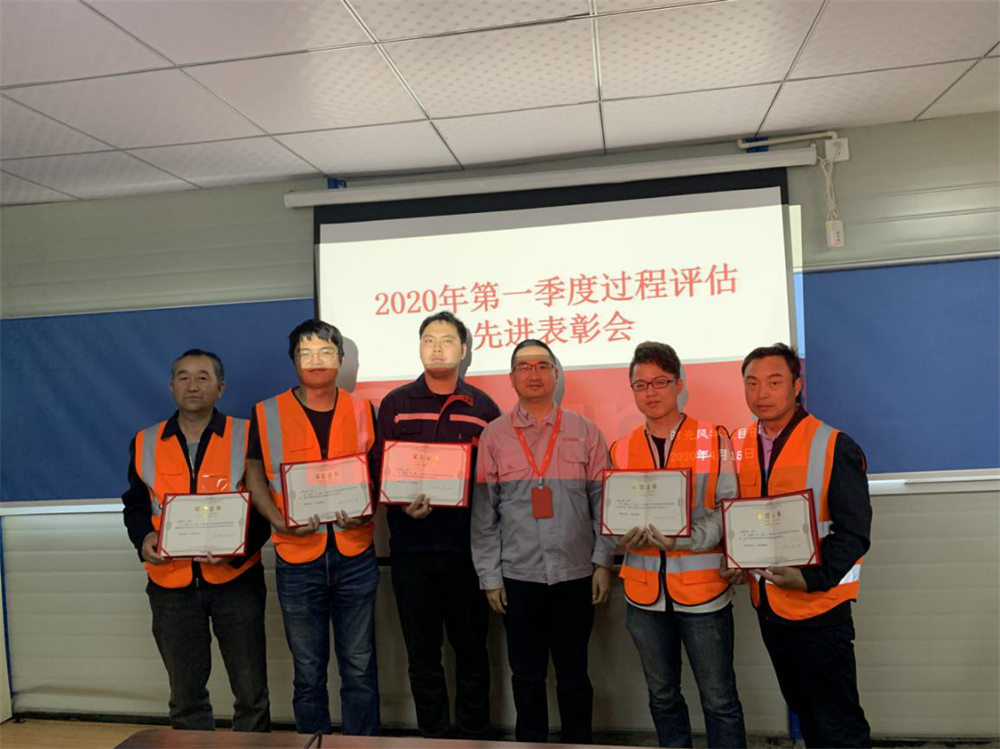 揚(yáng)建網(wǎng)訊 為表彰滁州時(shí)光風(fēng)華園項(xiàng)目在2020年弘陽(yáng)第三方檢測(cè)中取得的優(yōu)異成績(jī),4月15日下午,弘陽(yáng)業(yè)主方王柏帥經(jīng)理在項(xiàng)目部會(huì)議室召開表彰大會(huì),專門表彰了四公司項(xiàng)目部表現(xiàn)突出的員工劉忠華同志、周學(xué)平同志及趙文斐同志和李竹全團(tuán)隊(duì)。
