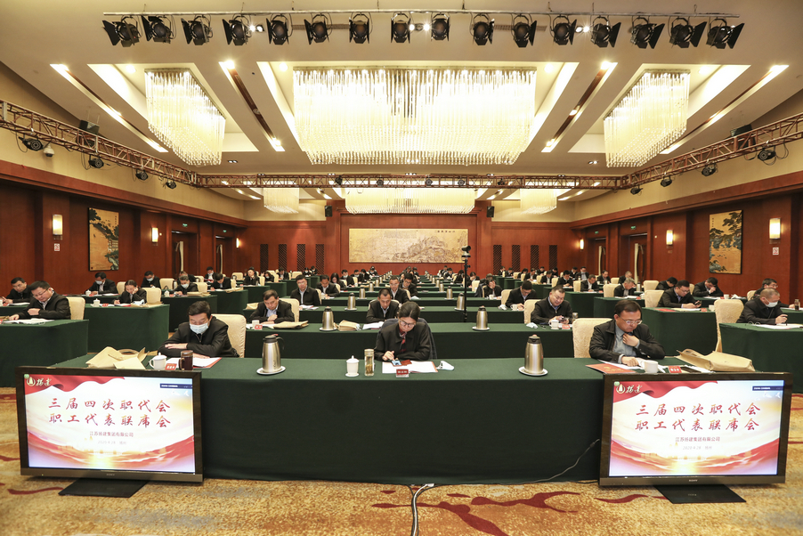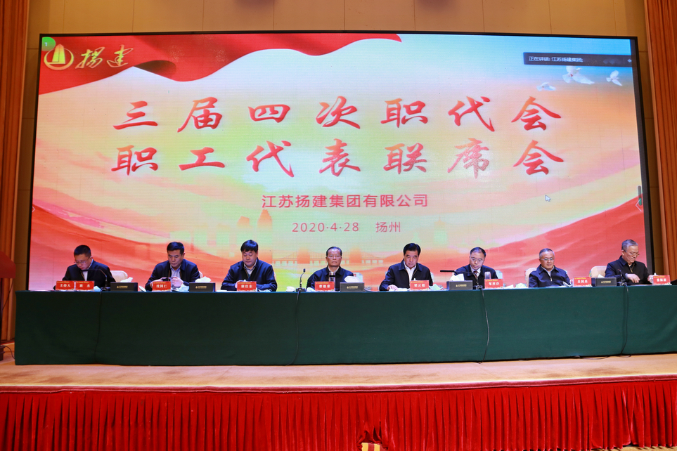 揚建網訊 428日上午,江蘇揚建集團三屆四次職工代表大會在揚州西園大酒店一樓萬華廳隆重召開。本次會議正式代表112名,84名揚州本埠的正式代表現場參加了會議;根據疫情防控需要,28名外埠代表通過視頻會議的形式,在線參與本次職代會。