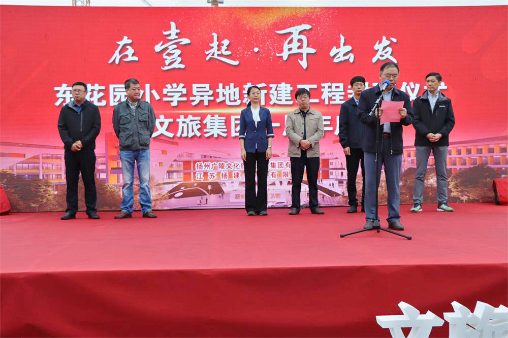 揚建網訊 5月30日上午,由我集團EPC總承包施工的東花園小學異地新建項目教學樓、綜合樓封頂儀式在項目現場隆重舉行。廣陵區副區長萬瀟瀟、區教體局局長葉健、文旅集團董事長王宇翔、揚建集團總經理鄒厚存、副總陳寶中和相關參建單位人員參加活動。文旅集團、揚建集團、區教體局主要負責人先后致辭。活動現場還播放了東花園異地新建項目專題視頻。