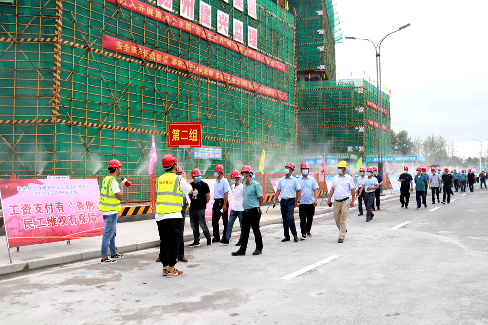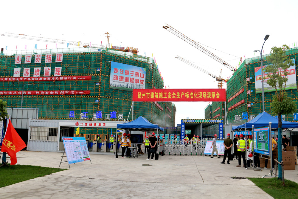揚(yáng)建網(wǎng)訊 6月29日下午,市住房和城鄉(xiāng)建設(shè)局在集團(tuán)與邗建集團(tuán)共同承建的揚(yáng)州軟件園項(xiàng)目舉行2020年揚(yáng)州市建筑施工安全生產(chǎn)標(biāo)準(zhǔn)化現(xiàn)場(chǎng)觀摩會(huì)。省建筑安全監(jiān)督總站站長(zhǎng)王佳強(qiáng)、市住建局局長(zhǎng)陶伯龍、副局長(zhǎng)薛炳寬、市建工控股董事長(zhǎng)王宏、我集團(tuán)總經(jīng)理鄒厚存、副總經(jīng)理丁傳武及來自全市各縣區(qū)建設(shè)安全監(jiān)管部門,建筑企業(yè)共300余位代表等出席活動(dòng)。