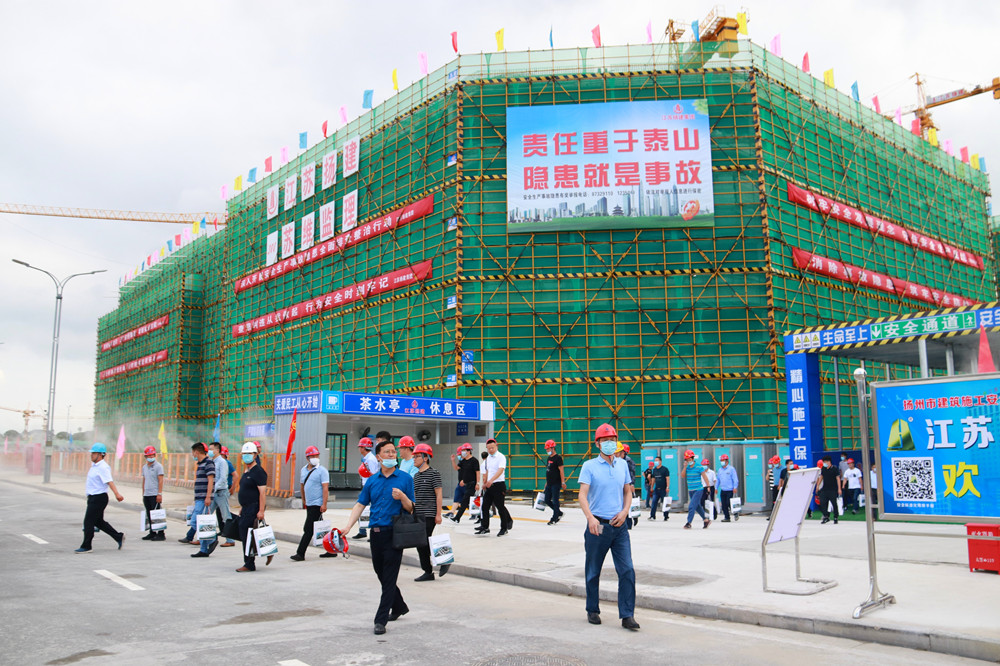 揚(yáng)州軟件園項(xiàng)目是市委、市政府推動(dòng)揚(yáng)州跨江融合發(fā)展,加快建設(shè)“強(qiáng)富美高新?lián)P州”,著力建設(shè)“三個(gè)名城”的一項(xiàng)重大戰(zhàn)略決策,項(xiàng)目位于生態(tài)科技新城核心區(qū)。參會(huì)人員到場(chǎng)后均按指示做好疫情防控措施,后由我項(xiàng)目部人員有序分組帶領(lǐng)先后進(jìn)行觀摩并講解項(xiàng)目安全生產(chǎn)標(biāo)準(zhǔn)化示范、農(nóng)民工實(shí)名制用工管理、智慧工地平臺(tái)應(yīng)用、整體集成式附著升降腳手架安全使用要點(diǎn)、揚(yáng)塵治理示范等,本項(xiàng)目在觀摩過程中得到了領(lǐng)導(dǎo)與同行們的一致好評(píng)。