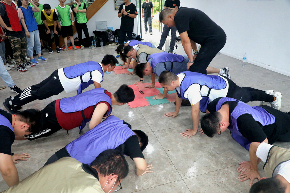 由于天氣原因,本次活動(dòng)不得不改在室內(nèi)進(jìn)行。參訓(xùn)學(xué)員以小組為競(jìng)賽單位,齊心協(xié)力地完成“群龍取水”“極速60秒”“達(dá)芬奇密碼”“集體報(bào)數(shù)”等團(tuán)隊(duì)挑戰(zhàn)任務(wù),達(dá)到了“放松心情、放下包袱、放開手腳、放大魅力”的目的。