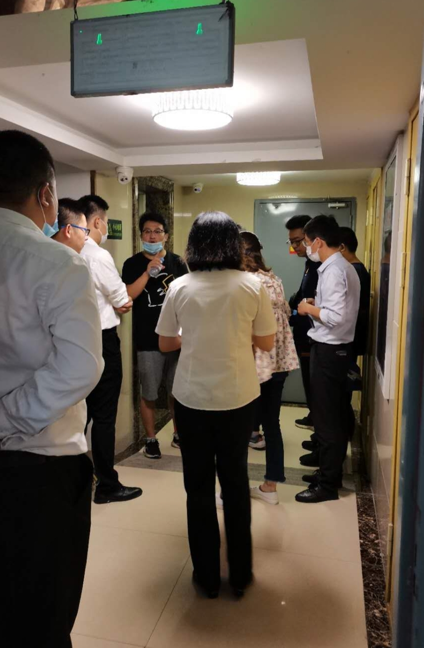 電梯維保員實(shí)施救援,2名被困人員在十五鐘內(nèi)被成功救出,并對被救出人員進(jìn)行安撫及詢問身體狀況。