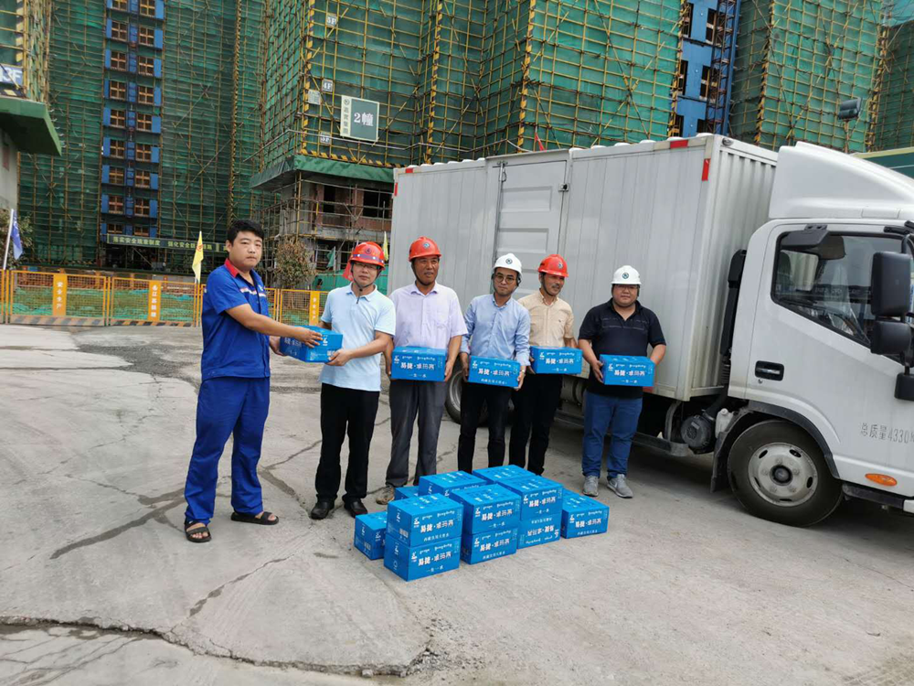 揚建網訊 8月21日下午,滁州安監站領導陳園、胡玉龍頂著37度的高溫,在炎炎烈日下為滁州時光風華園項目部送來了夏季清涼。他們強調,項目部要調整作息時間,保證茶水供應,確保防暑降溫藥品發放到位,切實落實好各項防暑降溫措施。
