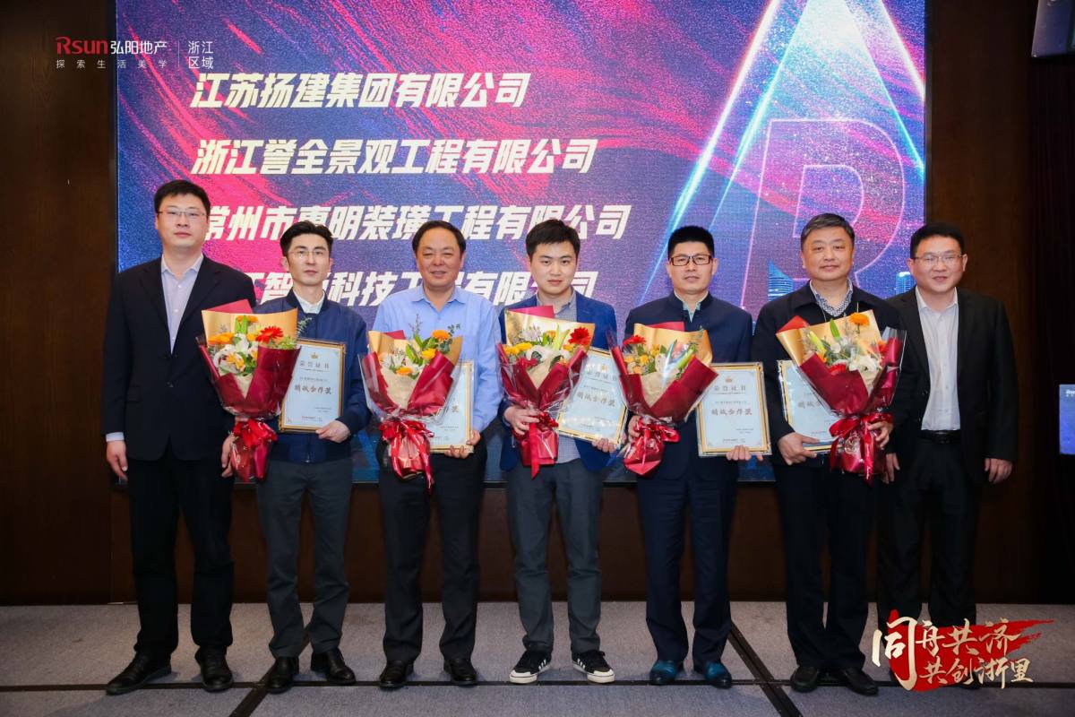 揚建網訊 4月13日下午,集團公司副總經理張斌應邀參加在杭州中豪國際大酒店召開的弘陽地產集團2021年浙江區域合作方座談會。本次座談會圍繞“同舟共濟、共創浙里”為主題,會上,我集團獲評弘陽地產集團2020-2021年度“精誠合作獎”榮譽。