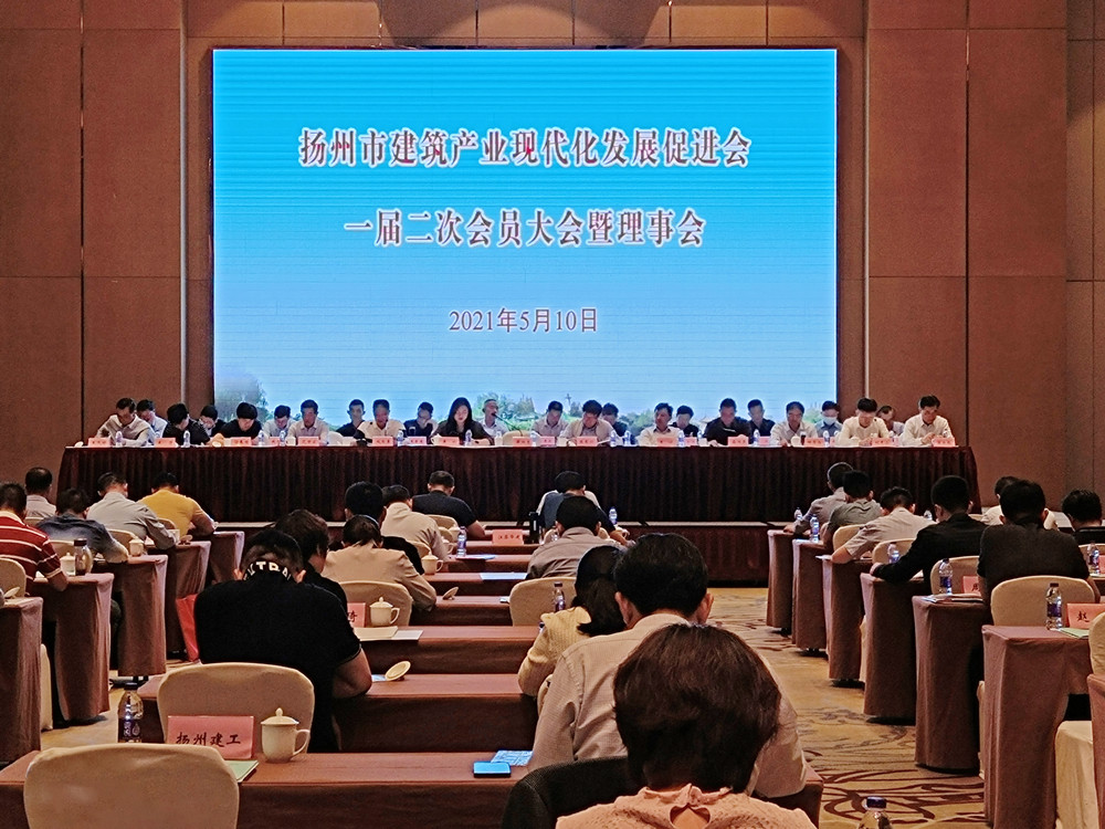揚建網訊 5月10日,揚州市建筑產業(yè)現代化發(fā)展促進會一屆二次會員大會在揚州市皇冠假日酒店召開,我集團梁云彪、鄒厚存、耿杰等領導出席了會議。