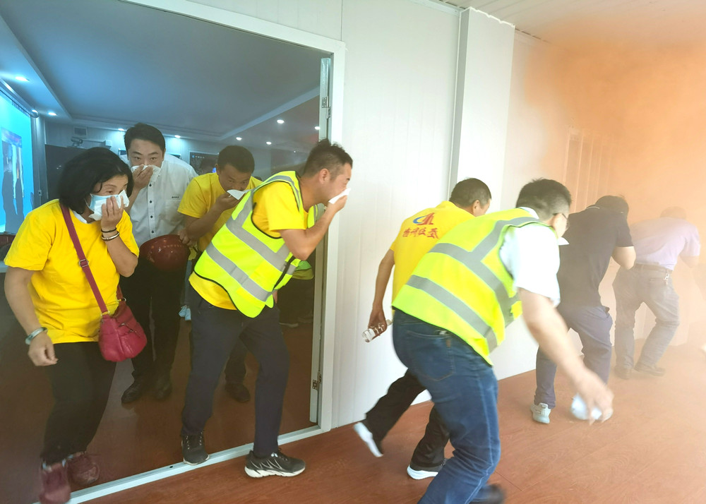 在隨后的室內疏散逃生和滅火器滅火演練中,教官組織參會人員模擬火災現場進行了實地疏散演練。大家通過親身實踐,掌握了消防安全知識,增強了火災情況應急處置能力。