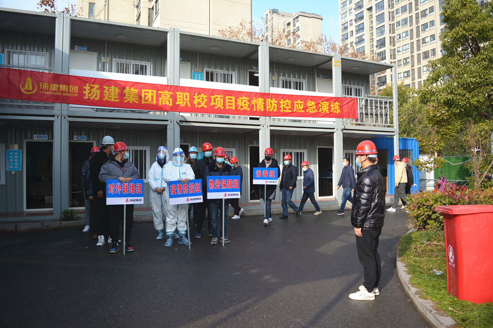 揚建網訊 目前,國內已有建筑工地發生疫情,疫情形勢依然嚴峻,為提高全體作業人員疫情防控意識和技能,有效應對新型冠狀病毒肺炎疫情,了解疫情防控措施,12月16日,集團項目管理三公司高職校項目部聯合建設(代建)單位、監理單位、各分包施工單位一起開展了疫情防控應急救援演練,科創集團民興公司副總經理陳宇、三公司常務副經理蔣畢忠等參加了觀摩指導。