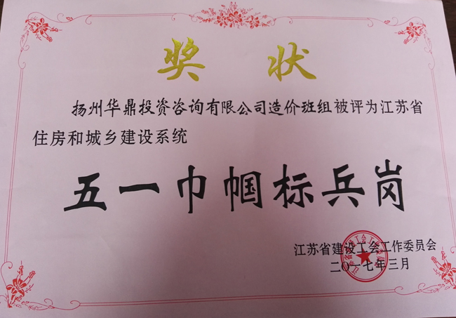 郭太琮)在省城鄉建設系統職工勞動競賽和建設工會工作評比中,我集團榮獲2016年度江蘇省住房和城鄉建設系統勞動競賽“有功單位”、“和諧勞動關系模范企業”、“安康杯”競賽優勝單位;揚州市樁基有限公司被評為2016年度江蘇省住房和城鄉建設系統“模范職工小家”榮譽稱號;揚州華鼎投資咨詢有限公司被評為2016年度江蘇省住房和城鄉建設系統“五一巾幗標兵崗”榮譽稱號。
