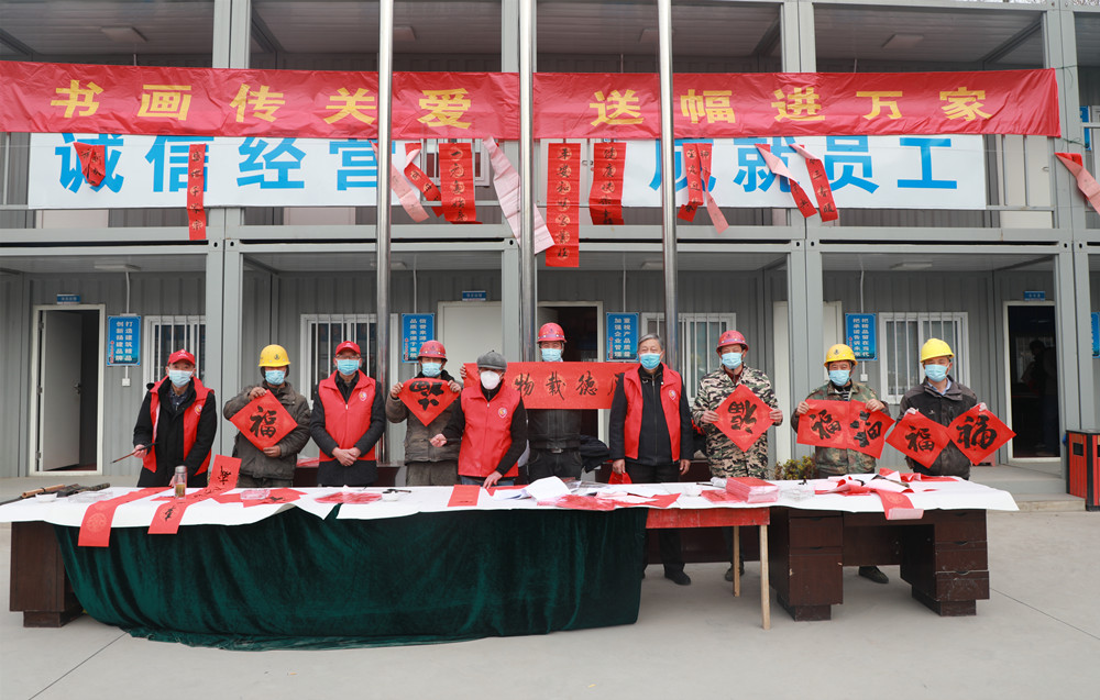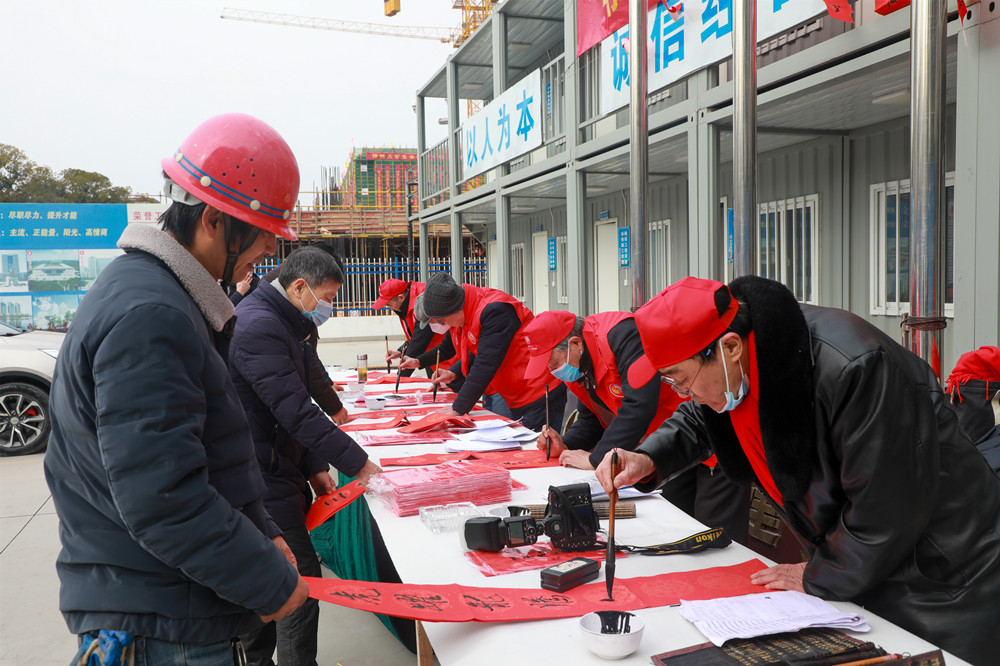 揚建網(wǎng)訊 2022年1月20日上午,市人大機關老干部黨支部聯(lián)合揚州市老干部書畫研究會,來到我集團項目管理三公司承建的揚州大學生命科學大樓項目建設工地,為駐守工地的農(nóng)民工兄弟們寫春聯(lián)、送福字。在新年來臨之際,提前向他們送上新春祝福,為他們送吉祥,鼓干勁,感謝他們?yōu)?/span>“好地方”揚州的城市建設和發(fā)展默默奉獻智慧與汗水。