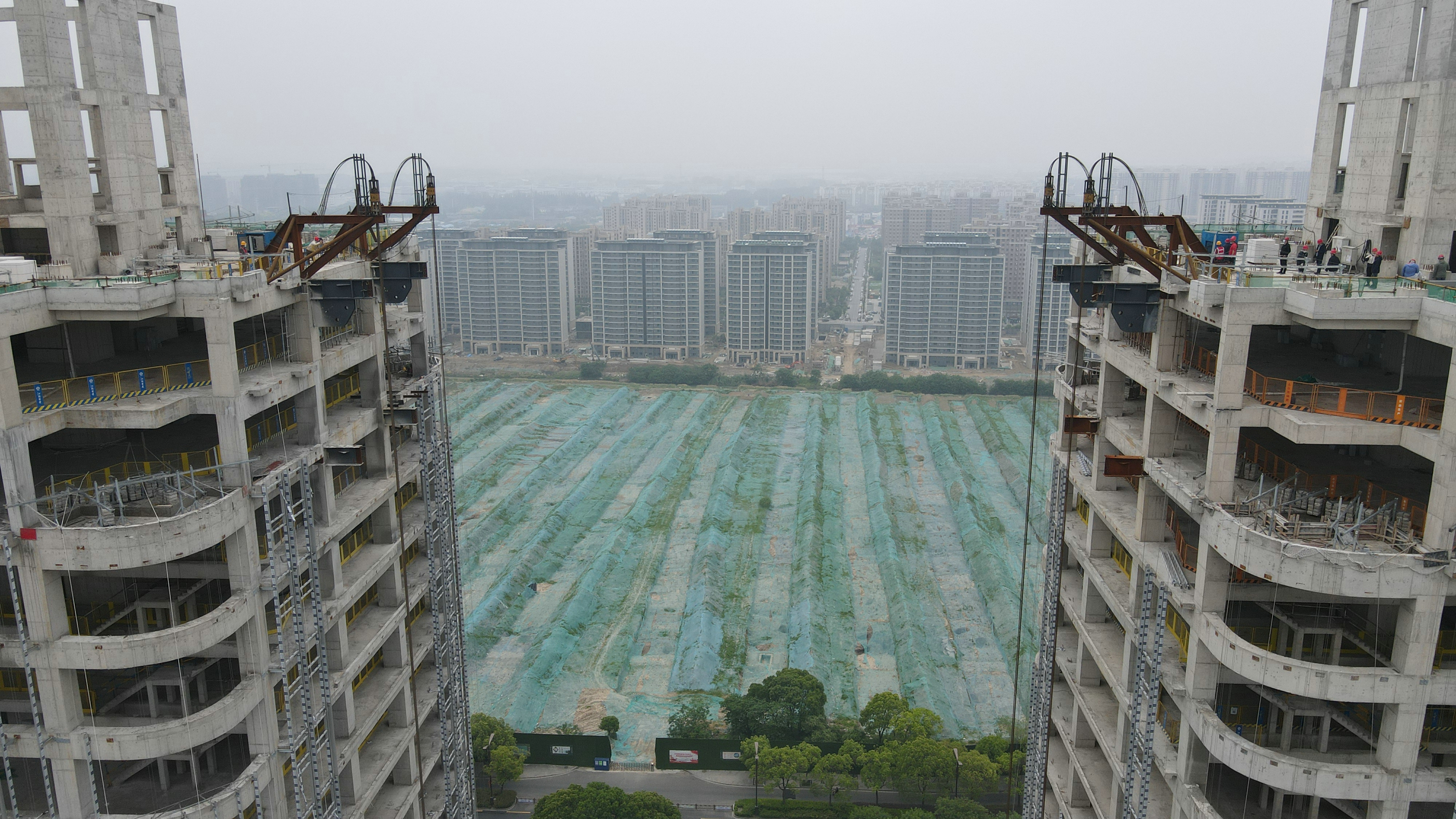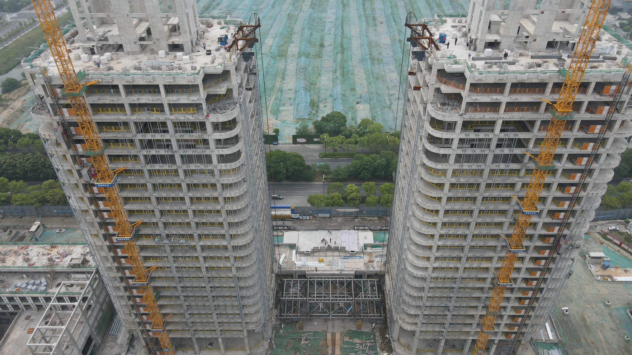 揚建網訊 5月13日上午9點整,跨度43.7m、重400噸,人稱蘇中高樓“第一跨”的揚州建工科技園A2、A3塔樓間的鋼結構連廊提升施工,按照既定工期目標正式啟動。
