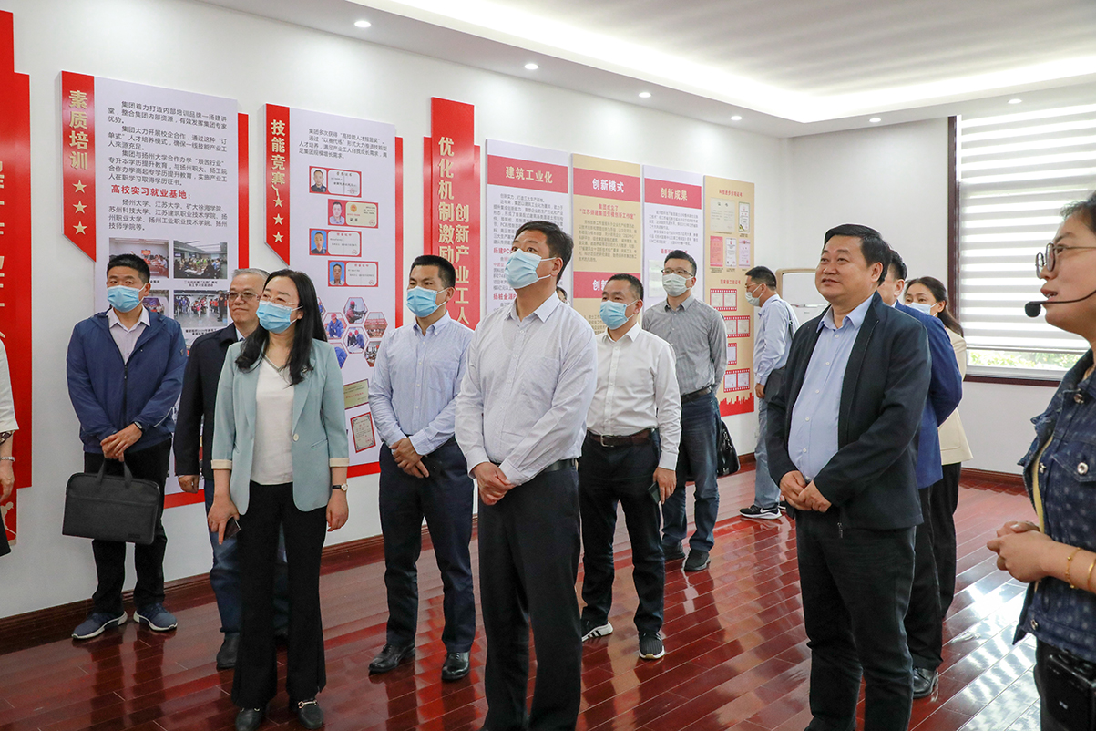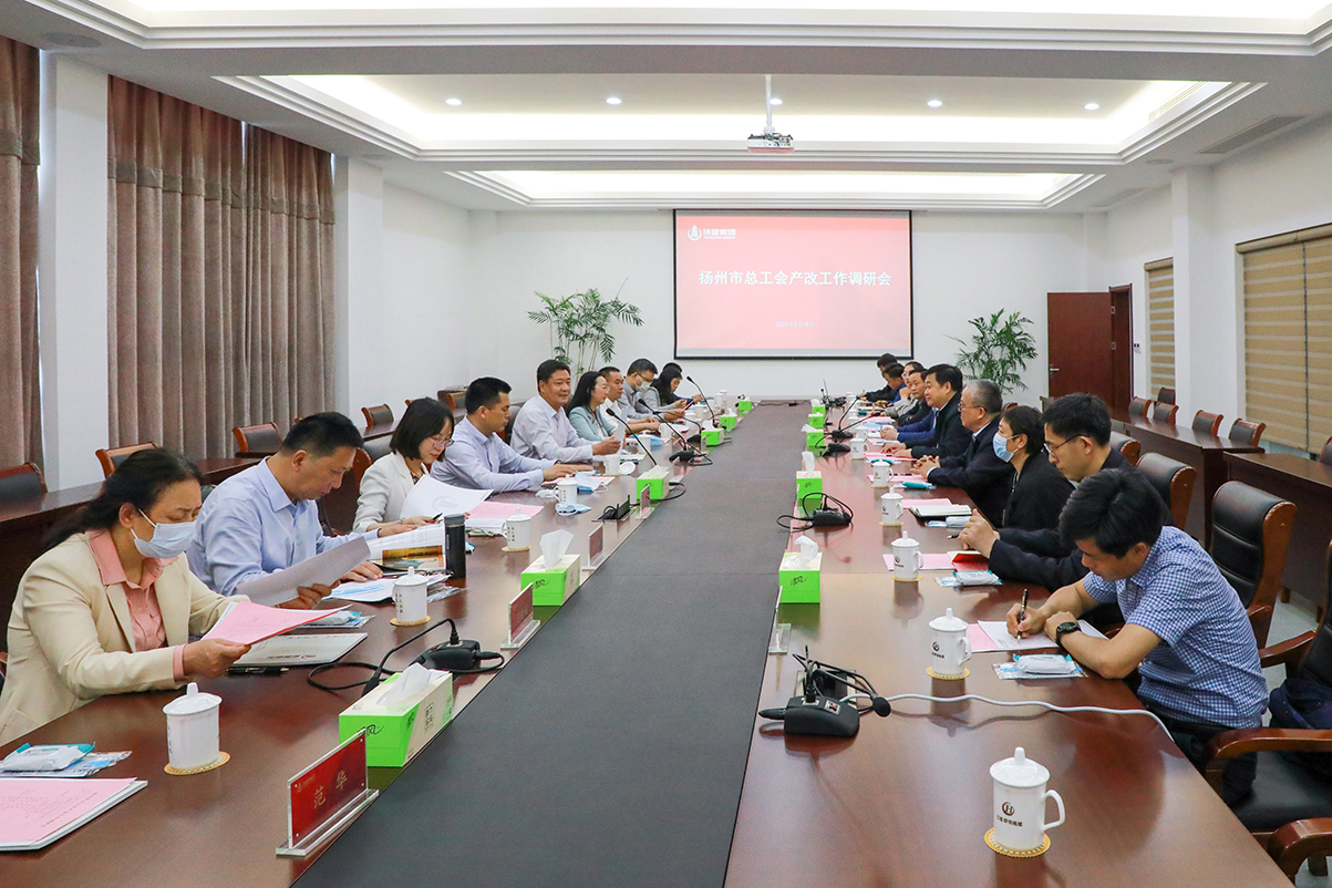 揚(yáng)建網(wǎng)訊 5月19日下午,市總工會(huì)黨組書記蔣元峰率隊(duì)到集團(tuán)安裝產(chǎn)業(yè)基地調(diào)研產(chǎn)業(yè)工人隊(duì)伍建設(shè)改革試點(diǎn)工作,市總工會(huì)副主席洪慧娟、韓士軍、楊浩及各部門負(fù)責(zé)人,集團(tuán)黨委書記、集團(tuán)公司董事長康往東、副書記張振新、工會(huì)主席劉海斌及有關(guān)負(fù)責(zé)同志參加了調(diào)研會(huì)。