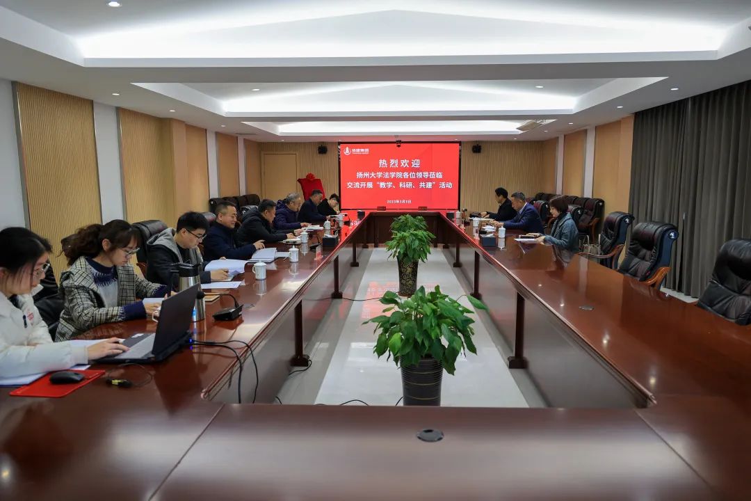 活動過程中,雙方在B座二樓會議室進行了廣泛、深入的交流座談,并舉行了揚州大學法學院“教學科研實踐基地”共建協(xié)議簽約儀式,和揚州大學法學院“教學實習基地”合作共建揭牌儀式。