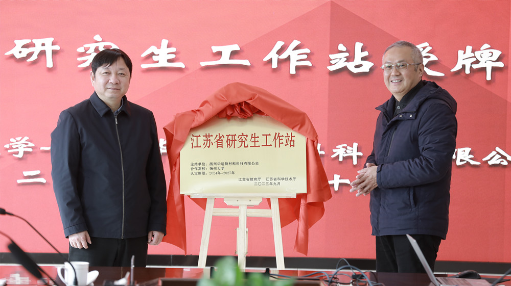 揚建網訊 為促進產教融合,推動科技創新和人才培養,揚州大學與揚建集團華運新材料科技有限公司合作建立了江蘇省研究生工作站。12月13日上午,揚大與華運公司共同舉行了工作站的揭牌儀式,揚州大學研究生院常務副院長薛懷國、我集團黨委副書記呂國兵為“江蘇省研究生工作站”揭牌,揚州大學建工學院院長康愛紅、研究生院副院長王莉、揚州大學楊鼎宜教授團隊及骨干教師、建祥公司經理賈向鋒和相關經理室成員參加了揭牌儀式。