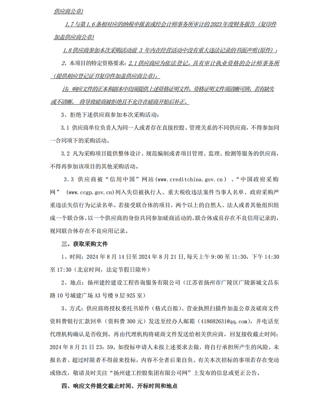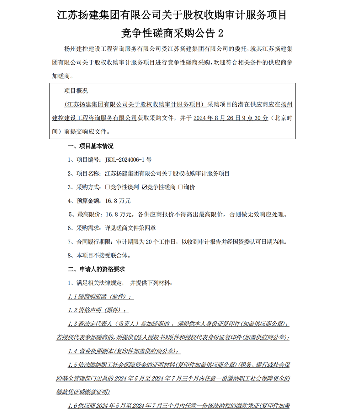 江蘇揚(yáng)建集團(tuán)有限公司關(guān)于股權(quán)收購審計服務(wù)項目競爭性磋商采購公告2