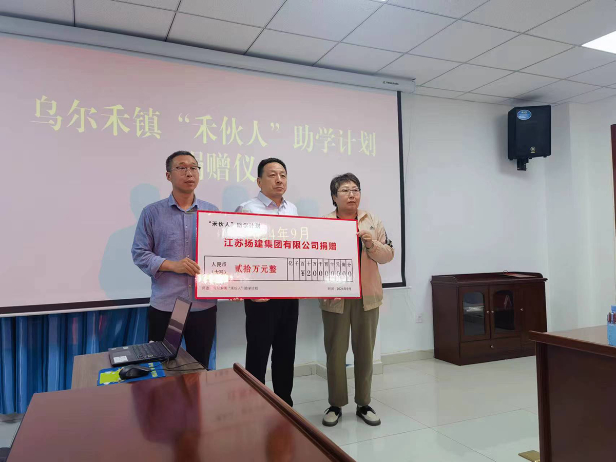 揚(yáng)建網(wǎng)訊  9月13日下午,新疆烏爾禾鎮(zhèn)“禾伙人”助學(xué)計(jì)劃捐贈(zèng)儀式在烏爾禾鎮(zhèn)政府三樓會(huì)議室隆重舉行。江蘇揚(yáng)建集團(tuán)有限公司副總經(jīng)理、工會(huì)主席劉海斌同志代表揚(yáng)建集團(tuán)應(yīng)邀出席、揚(yáng)建集團(tuán)新疆分公司相關(guān)負(fù)責(zé)同志共同參加。