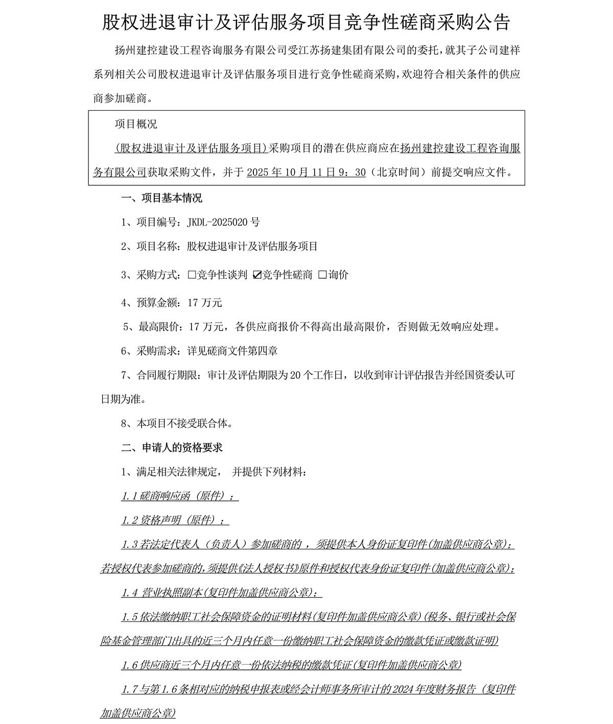 附件:股權(quán)進(jìn)退審計(jì)及評(píng)估服務(wù)項(xiàng)目競(jìng)爭(zhēng)性磋商采購公告