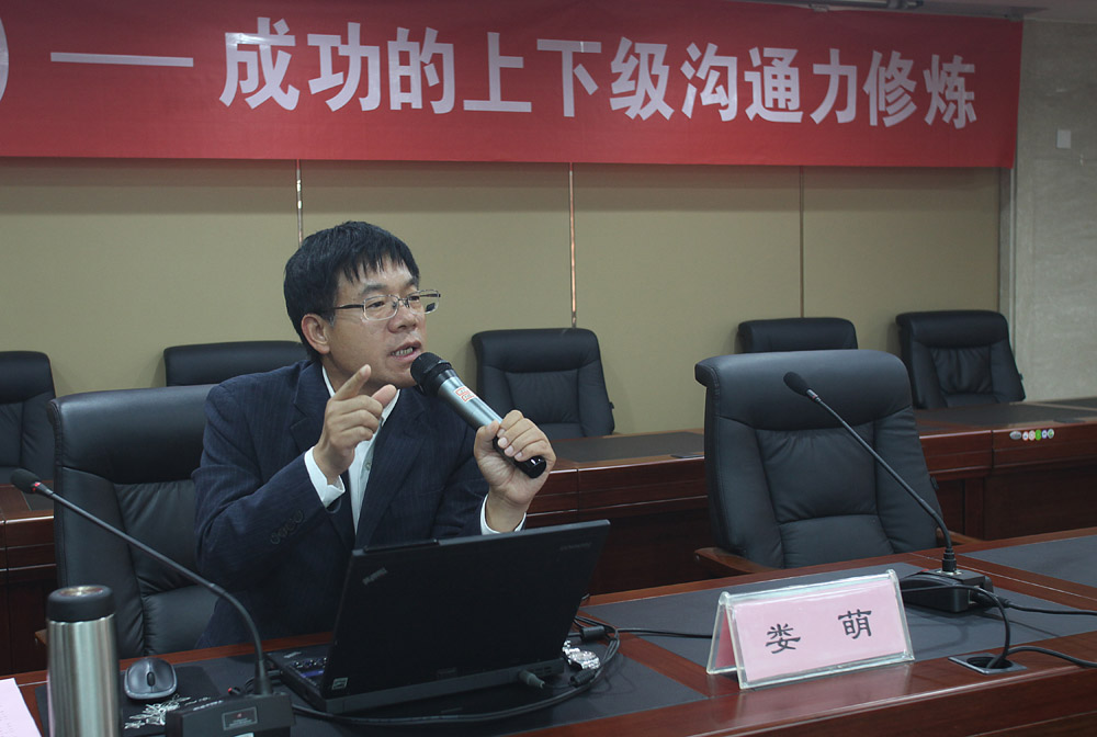 在此基礎(chǔ)上,婁老師將后續(xù)的課程分為“如何與上司溝通”與“如何與下屬溝通”兩大方面。在與上司溝通中,婁老師分析了下屬如何接收指示、匯報(bào)工作、討論問題、發(fā)表異議、接受批評等五種情況及應(yīng)對措施,著重強(qiáng)調(diào)了“同理心”的重要性;在與下屬的溝通中,婁老師詳細(xì)剖析了職位權(quán)、個(gè)人權(quán)以及領(lǐng)導(dǎo)權(quán)的關(guān)聯(lián),介紹了管理層管人的四個(gè)層次,提出了領(lǐng)導(dǎo)與下屬溝通的三大原則。