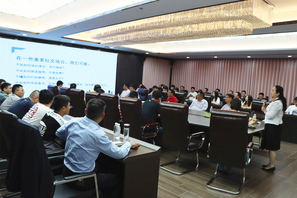 揚建網訊 5月9日下午,集團公司在樁基公司會議室組織“職場有禮,禮行為先”揚建講堂培訓。本次培訓由集團人力資源部、一公司、樁基公司共同承辦,一公司領導班子成員、項目經理、部門負責人、商務經理、項目工程師以及樁基公司相關人員參加,集團公司副總經理、項目管理一公司經理陳寶中、集團總經理助理孔凡裕等領導出席。